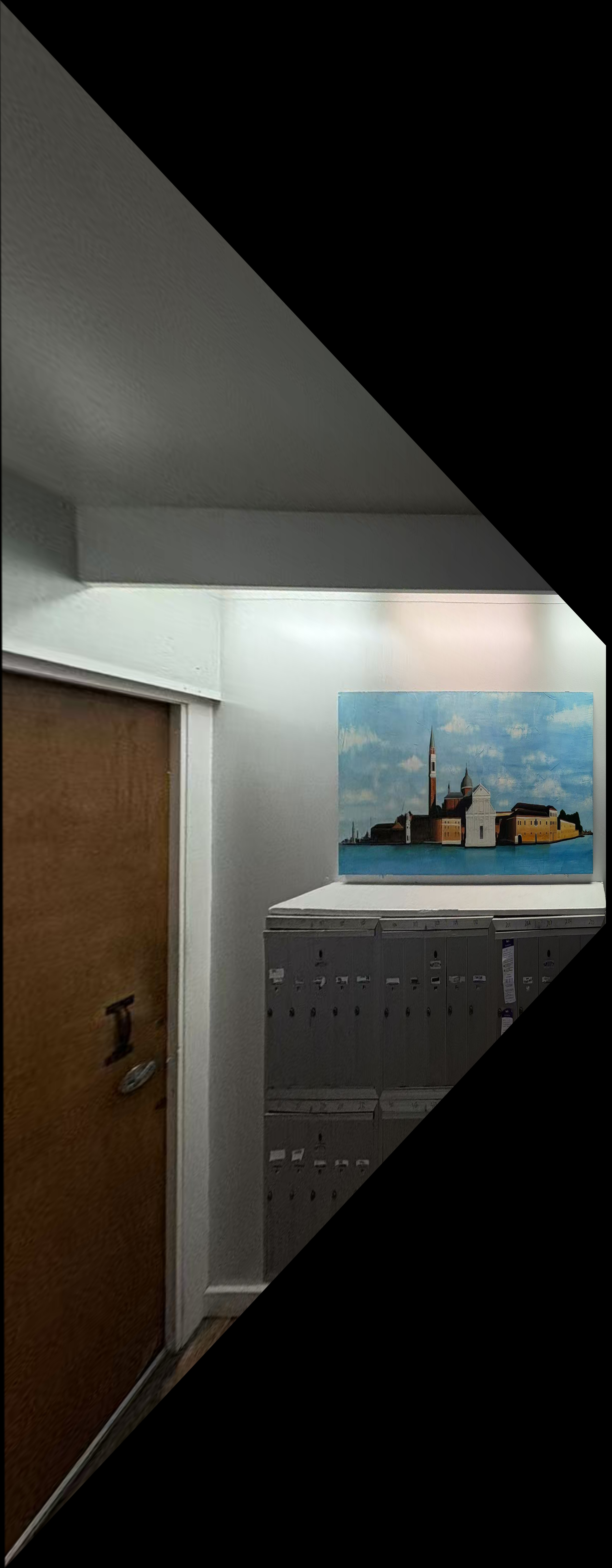 Now I have the warped images and the overall size of resulting image. Since I've considered the translation issue in Recover Homography section, now all the warped images are in the right place. Note that the unwarped image (which is the middle one of the three pictures) will be translated as well to move to the right place. And I can get the overall 'panorama canvas' shape. I will create a pure black (zero-value) overall canvas, and put three warped and translated figures on that.